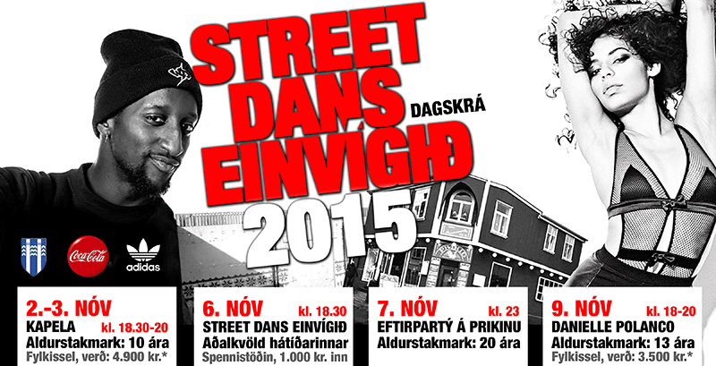 STÆRSTI STREET DANS VIÐBURÐUR ÁRSINS HEIMSFRÆGIR ERLENDIR GESTAKENNARAR KENNA NÁMSKEIÐ OPIN ÖLLUM DANSKEPPNI FYRIR ALLA STREET DANSARA Á FRAMHALDSSTIGI